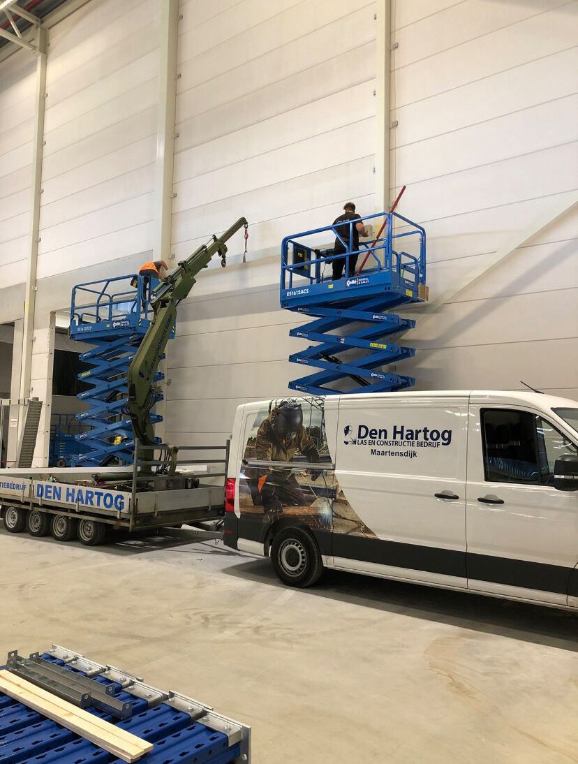 Den Hartog Las- en Constructiebedrijf B.V. heeft stalen balken gemonteerd in een distributiecentrum van 50.000m³. Deze stalen balken worden geplaatst boven alle doorgangen naar andere afdelingen. Deze balken gaan ervoor zorgen dat er branddeuren gemonteerd kunnen worden en dichtgeschoven kunnen worden bij brand. Dit voorkomt dat de brand direct overslaat naar andere afdelingen.